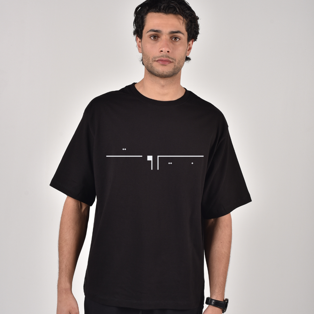 Carry a piece of the Lebanese capital with you. This striking black t-shirt features a minimalist, abstract line-art design representing the beautiful Arabic script for "Beirut" (بيروت).